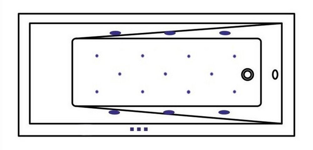 - Аэромассажная система (11 форсунок AERO-JET) с функцией регулировки интенсивности массажа;