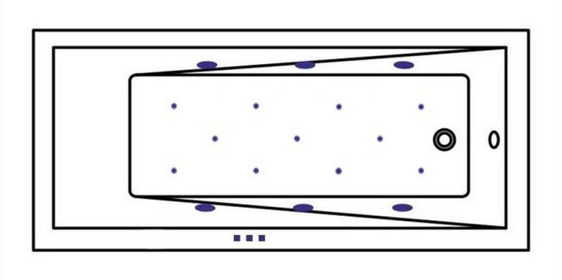 - Аэромассажная система (11 форсунок AERO-JET) с функцией регулировки интенсивности массажа;