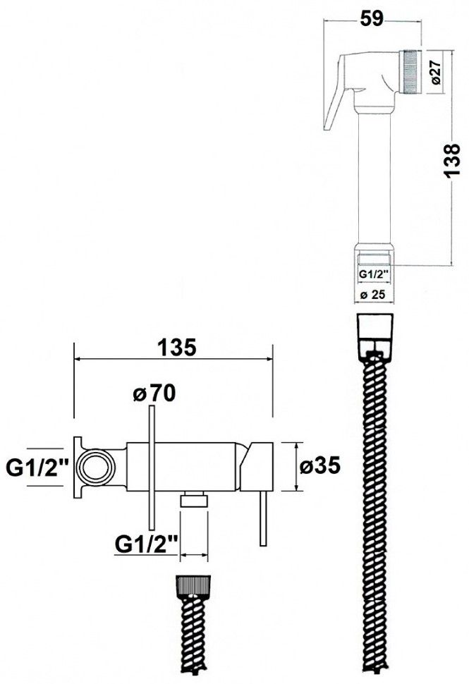 Гигиенический душ AQUAme Minimal AQM 6020MB со смесителем чёрный матовый