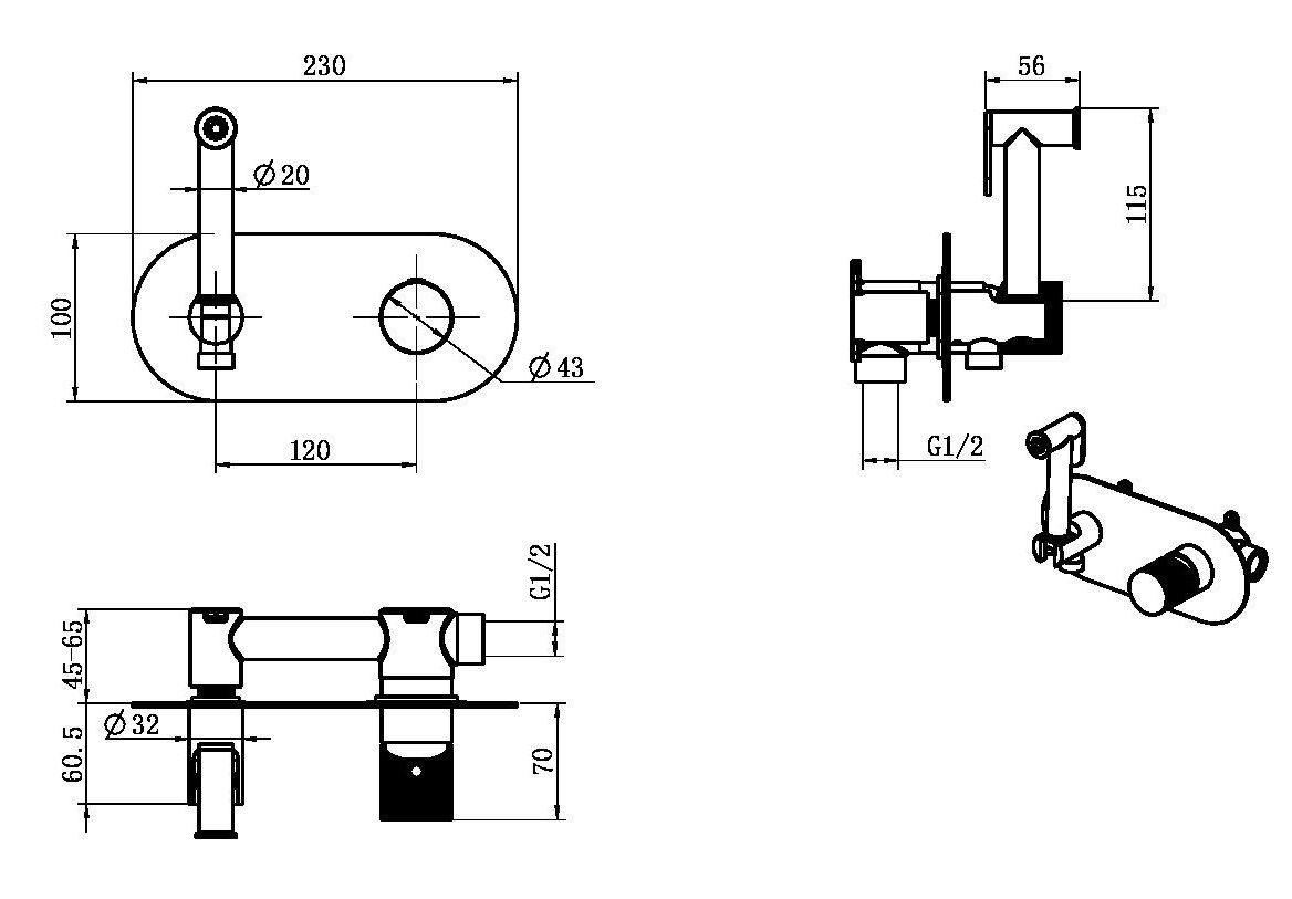 Гигиенический душ со смесителем Boheme Stick 127-GG.Характеристики:Цвет: золото.