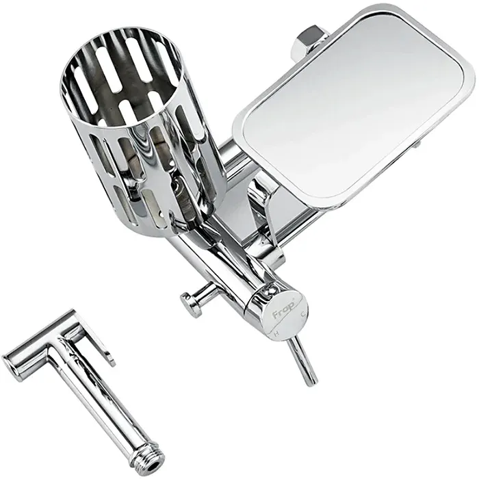 Оснащение: душевой шланг, держатель для душа, полочка, держатель туалетной бумаги, держатель освежителя воздуха