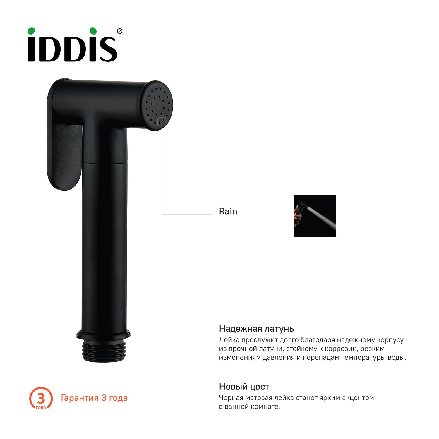 Гигиенический душ IDDIS Bidet Hand Shower чёрный 020BBLGi20