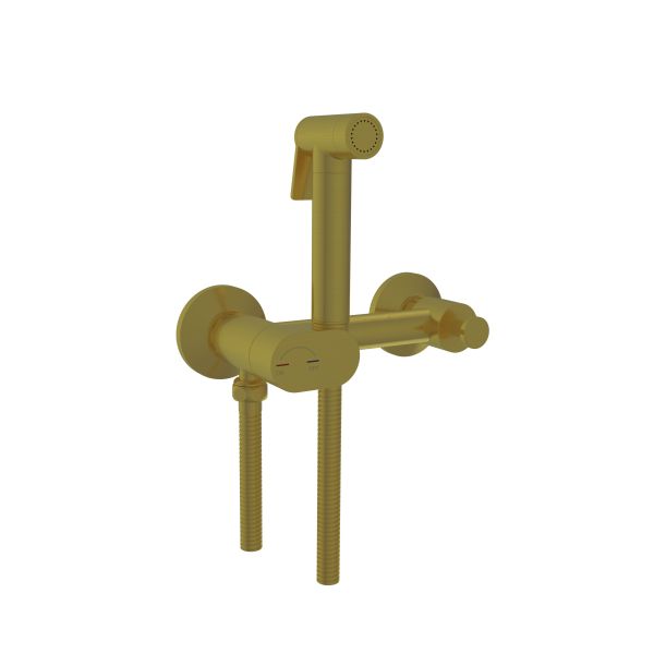Гигиенический душевой комплект RGW SP-216Gb — это смеситель настенный, кран держатель лейки с поворотным управлением холодная и горячая вода, ручная лейка — RGW SP-216Gb в цвете золото Brush.Гигиенический душ с поворотным управлением — это новаторское сантехническое оборудование в разделе «Смесители и лейки». В основе идеи: измененный смеситель под кронштейн — держатель лейки с блокировкой примеса воды и стандартная душевая лейка, дополненная кнопкой для подачи воды.Именно этот настенный душ для гигиены оснащен прогрессивным поворотным картриджем, кран обладает функцией «Умная блокировка». Важно, что его корпус выполнен из латуни.Основная функция гигдуша для современного человека — соблюдение личной гигиены в повседневной жизни без использования туалетной бумаги. Ушел в прошлое смеситель под биде, теперь вы можете купить биде без отверстий под смеситель и добавить к нему на стену гигиенический душ со шлангом. Однако в последние годы биде утрачивает свою актуальность, и установка биде в ванной комнате зачастую нецелесообразна, так как комбинация унитаз плюс гигиенический душ успешно справляется с функционалом за счет широты сливной трубы в унитазе и заменяет устаревшую систему. Гигиенический душ для туалета и биде имеет широкий спектр возможностей и ряд бытовых преимуществ, например: