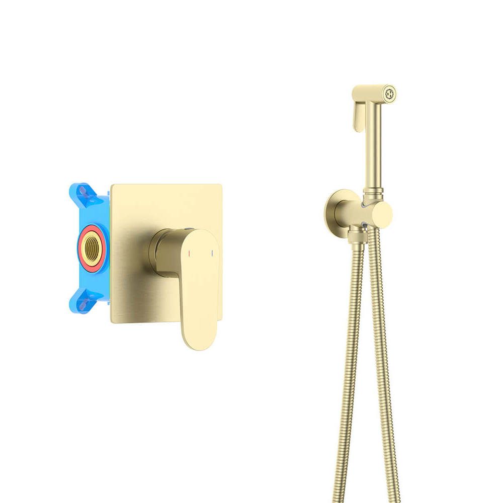 Гигиенический душ со смесителем Aquatek Оберон AQ1219BG шлифованное золото купить