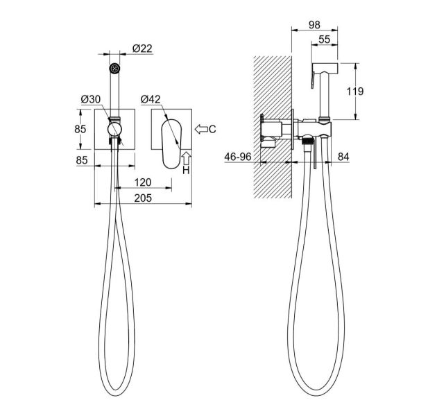 • в комплекте гигиенический душ, держатель для душа и шланг
