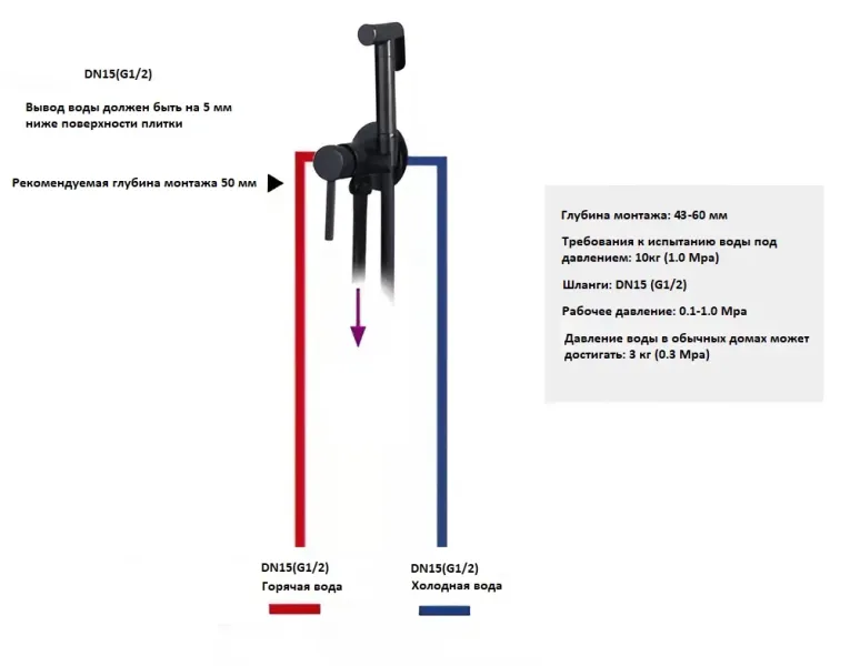 Душ BRAIES B CK-P07B гигиенический со смесителем из латуни BOCH MANN, с шлангом 120 см, цвет ЧЕРНЫЙИдеально подходящий для современной ванной комнаты, этот роскошный набор для душа - идеальный выбор. Включает в себя высококачественный душевой клапан с термостатическим управлением и полный набор триггеров со шлангом, головным и настенным кронштейном. Особенности продукта: