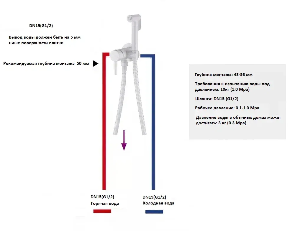 Душ BRAIES W CK-P07W гигиенический со смесителем из латуни BOCH MANN, с шлангом 120 см, цвет БЕЛЫЙИдеально подходящий для современной ванной комнаты, этот роскошный хромированный набор для душа - идеальный выбор. Включает в себя высококачественный душевой клапан с термостатическим управлением и полный набор триггеров со шлангом, головным и настенным кронштейном.Особенности продукта: Хромированная отделкаДавление воды: MP0,5Рекомендуемое максимальное давление: 0,5 бар