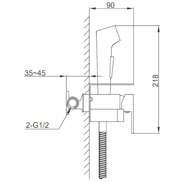 В комплекте:Душевой шланг 120 см, С гигиеническим душем, Держатель лейки