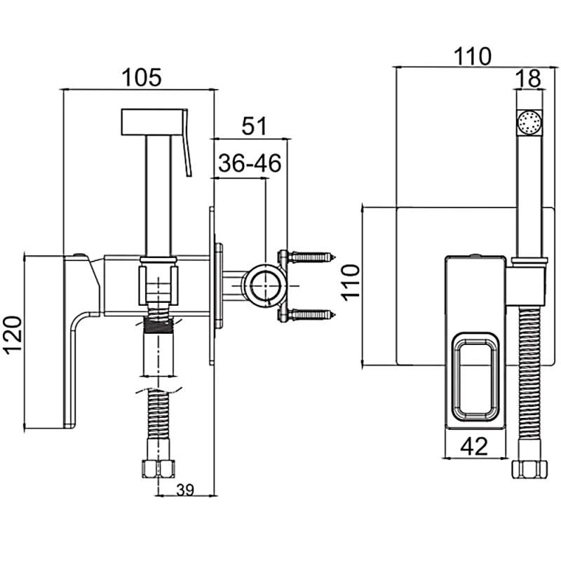 - длина душевого шланга: 1200 мм