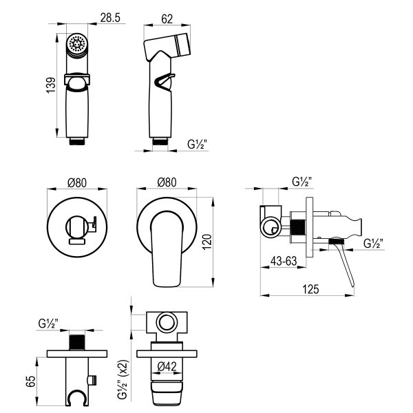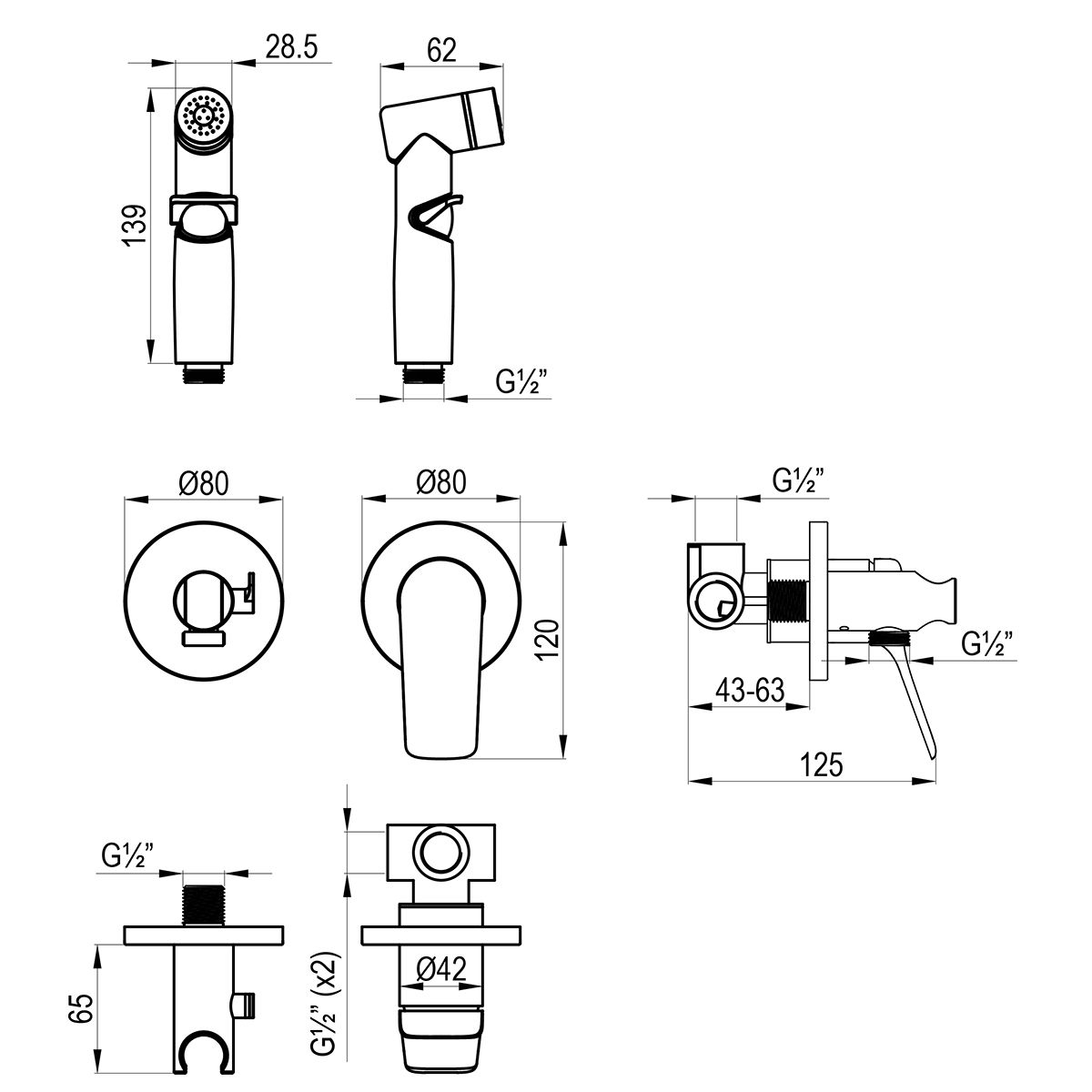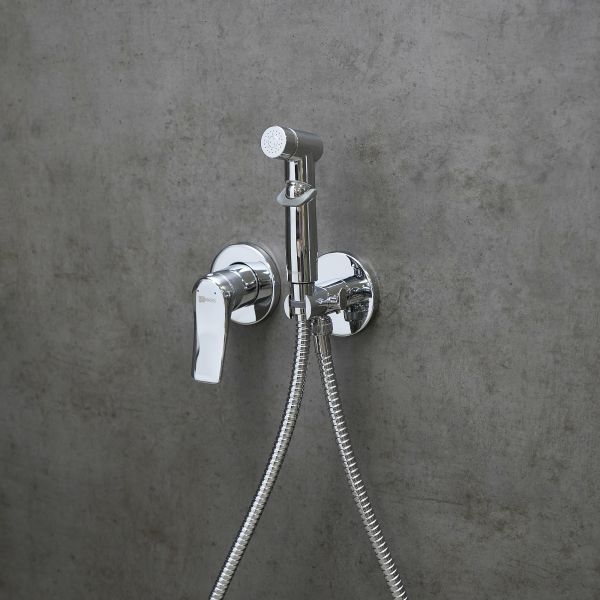 • Аксессуары в комплекте: лейка гигиенического душа с регулятором напора воды, подключение для душевого шланга с креплением для лейки, душевой шланг 1,2 м