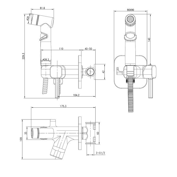 • Аксессуары в комплекте: лейка гигиенического душа с регулятором напора воды, душевой шланг 1,2 м (Turn-Free)
