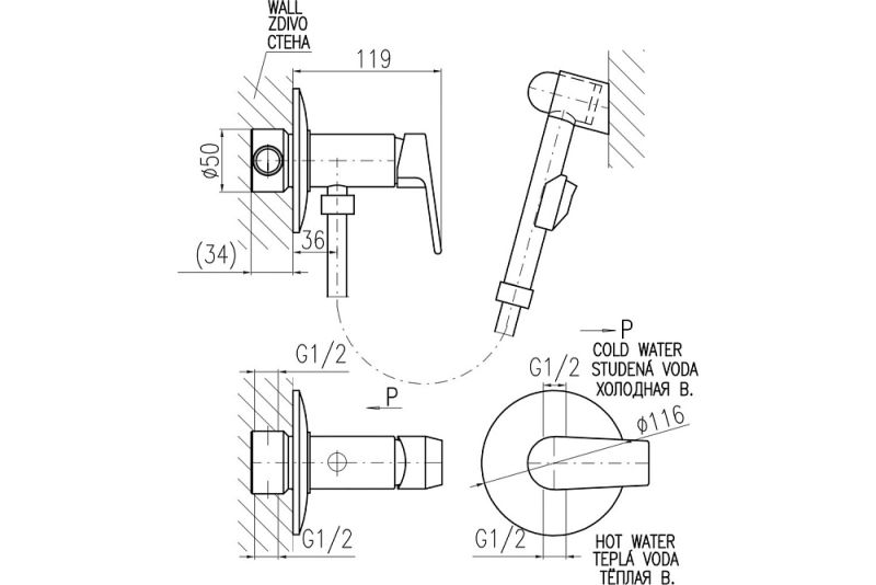 Гигиенический душ со смесителем Rav Slezak Colorado CO147/1Z золото купить