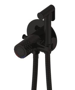 Гигиенический душ со смесителем Rose R225H, черный.Управление: нажимное (порционное).Материал: латунь.Монтаж: внутренний (скрытый).На корпусе гигиенического душа расположен крючок для полотенца.