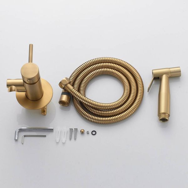 Гигиенический душ со смесителем Shevanik S147G в современном цвете "золотой сатин" изготовлен из прочной латуни, что обеспечивает его долговечность и надежность. Устройство оснащено керамическим картриджем и рычажным управлением, что гарантирует плавную и точную регулировку воды. Продукт предназначен для скрытого монтажа на одно отверстие, при этом внутренняя часть идет в комплекте, что облегчает установку. Лейка гигиенического душа выполнена из нержавеющей стали, устойчивой к коррозии и обладающей долгим сроком службы. Душевой шланг имеет двойную металлическую оплетку и длину 120 см, что обеспечивает его прочность и защиту от перекручивания. На данное изделие предоставляется гарантия 5 лет, что подтверждает его высокое качество и надежность.