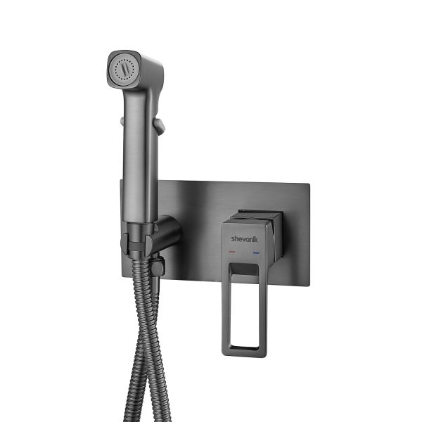 Гигиенический душ со смесителем Shevanik S6805T в современном цвете "оружейная сталь" предназначен для скрытого монтажа, что позволяет сохранить эстетичный вид ванной комнаты. Изготовлен из прочной латуни, что гарантирует долговечность и устойчивость к коррозии. Управление осуществляется с помощью керамического картриджа и рычажного механизма, обеспечивая плавную и точную регулировку воды. Лейка гигиенического душа выполнена из ABS пластика, а её держатель удобно размещен на корпусе смесителя, что способствует комфортному использованию. В комплект входит шланг в двойной металлической оплетке длиной 120 см, который обеспечивает надежность и защиту от повреждений. Гарантия на данный продукт составляет 5 лет, что подтверждает его высокое качество и надежность.