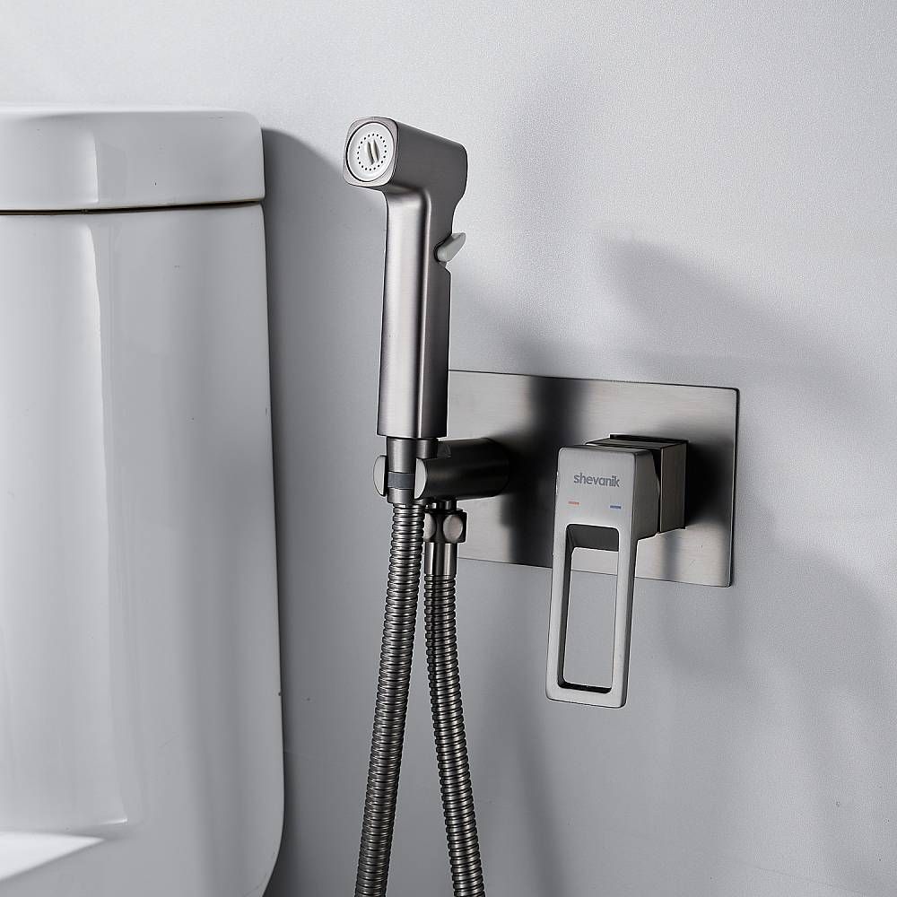 Гигиенический душ со смесителем Shevanik S6805T оружейная сталь купить