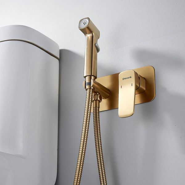 Гигиенический душ со смесителем Shevanik S9905G в цвете "золотой сатин" (матовое полированное золото) предназначен для скрытого монтажа, благодаря чему сохраняется эстетичный вид ванной комнаты. Изготовлен из надёжной латуни, что обеспечивает долговечность и устойчивость к коррозии. Управление осуществляется с помощью керамического картриджа и рычажного механизма, гарантируя плавную и точную регулировку воды.