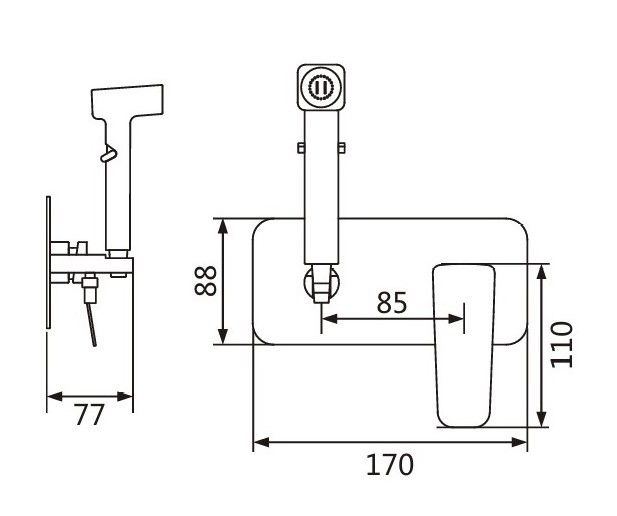 Лейка гигиенического душа выполнена из ABS пластика, её держатель удобно расположен на корпусе смесителя, что способствует удобному использованию. В комплект входит шланг в двойной металлической оплетке длиной 120 см, который отличается надежностью и защищает от повреждений.