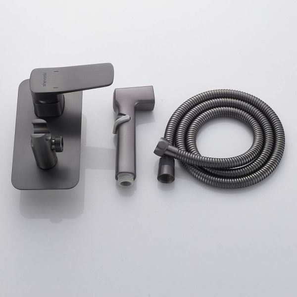 Гигиенический душ со смесителем Shevanik S9905T в современном цвете "оружейная сталь" предназначен для скрытого монтажа, благодаря чему сохраняется эстетичный вид ванной комнаты. Изготовлен из надёжной латуни, что обеспечивает долговечность и устойчивость к коррозии. Управление осуществляется с помощью керамического картриджа и рычажного механизма, гарантируя плавную и точную регулировку воды.