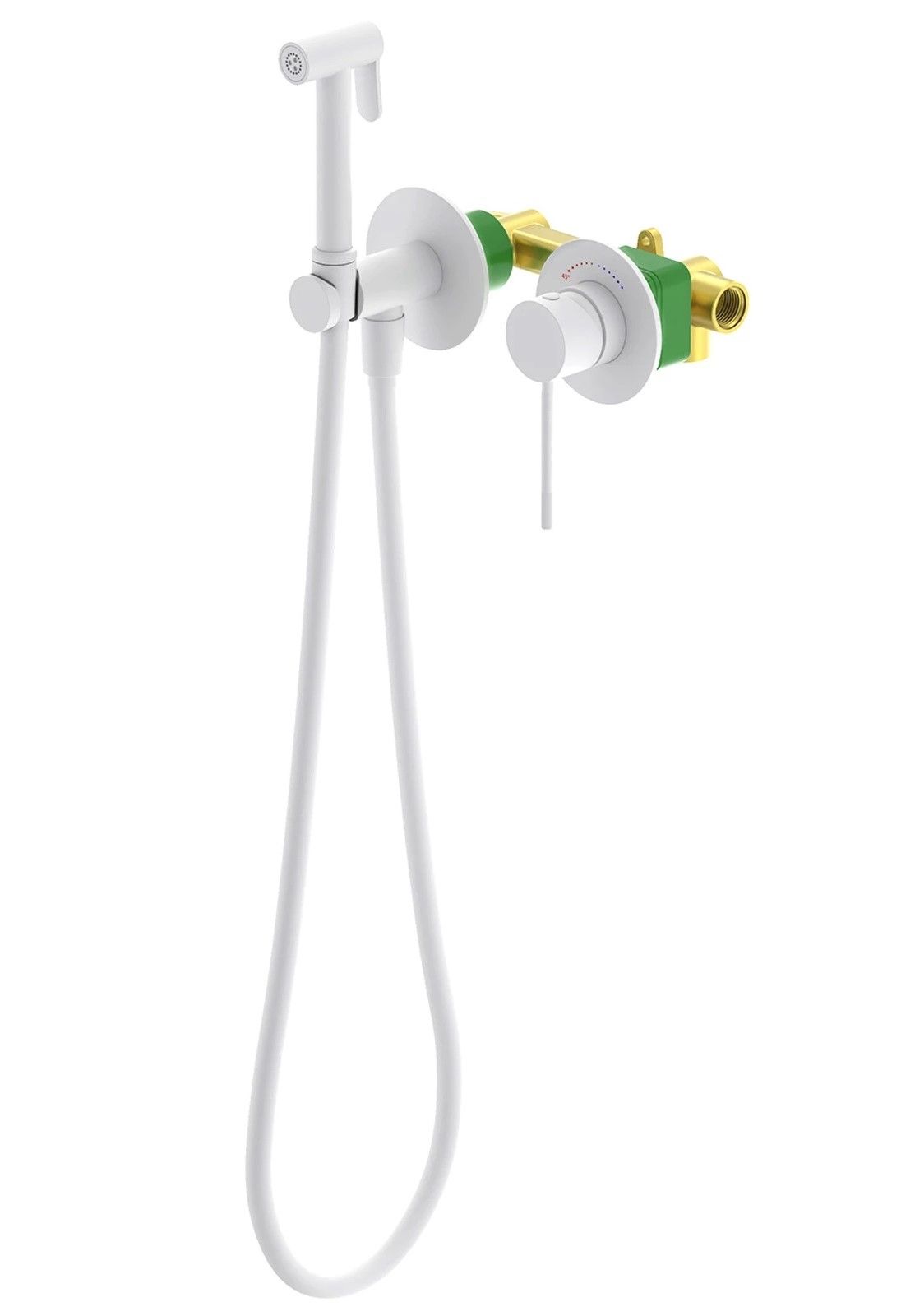 "Белый матовый" цвет - это воплощение идеи элегантности и современного подхода, он выразителен и аристократичен. Смесители белого цвета универсальны и могут сочетаться с аксессуарами и отделкой стен разных цветов. Встраиваемый смеситель с гигиеническим душем Timo Saona 2339 предназначен для монтажа в твердой или полой стене. Термокартридж с защитой от ожогов ограничивает максимальную температуру воды 45 С° повышая комфортность и безопасность использования. Основной задачей данной модели является: экономия места (установка чаши для биде занимает достаточно много места и к тому же затратнее). Все коммуникации, крепления и механизмы спрятаны в стену и закрыты декоративными накладками, снаружи находится только рычаг управления смесителем и держатель гигиенической лейки с подключеним шланга, такая модель отлично сочетается с инсталляцией для унитаза. Длины шланга 1,2 метра хватает для решения гигиенических задач. Можно также использовать например, для мытья собаки после прогулки или наполнения ведра воды и т.д. Сложностей монтажа не возникает при установке смесителя опытным сантехником. Внимательно изучите инструкцию по монтажу и эксплуатации. Уход за такими смесителями самый легкий, на них практически не видны водяные разводы.