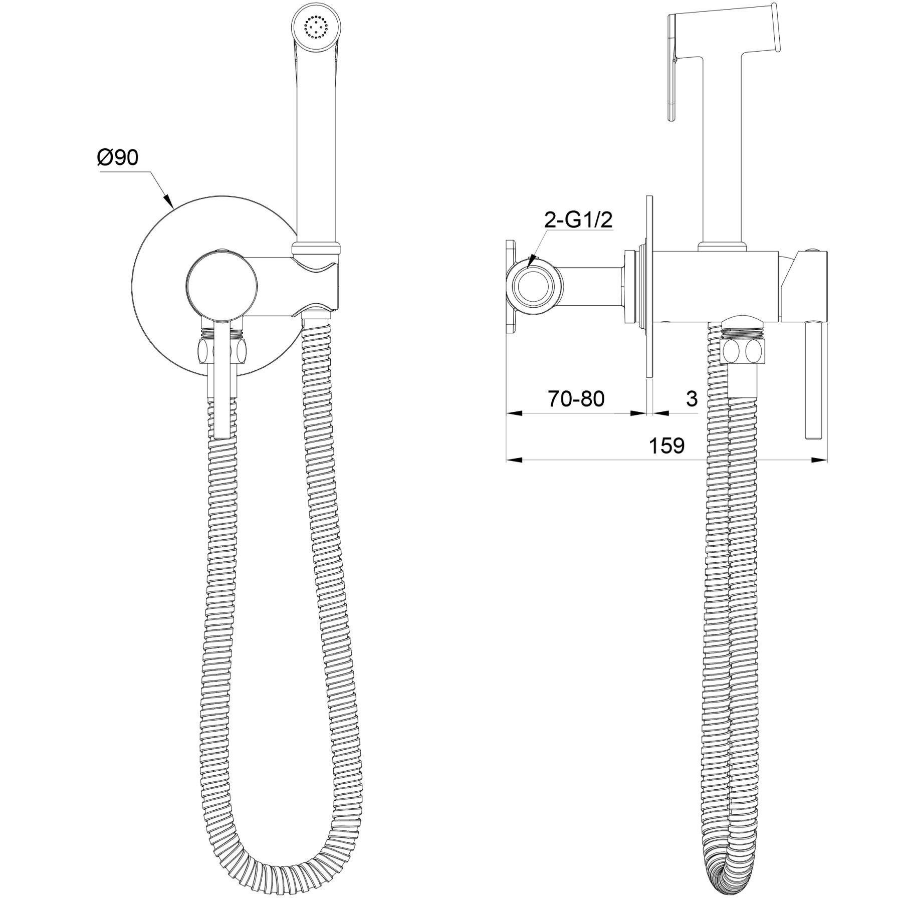 Гигиенический душ со смесителем Wonzon & Woghand Stick WW-88829902-BGM тёмный графит