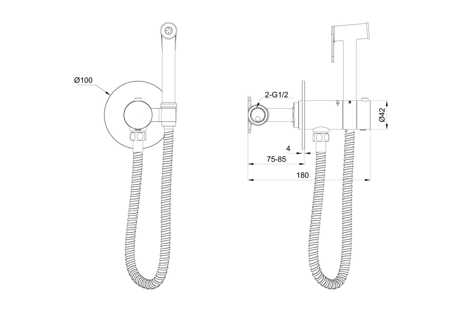Смеситель с гигиеническим душем и термостатом, встраиваемый WONZON & WOGHAND, Белый матовый (WW-88829909-MW)