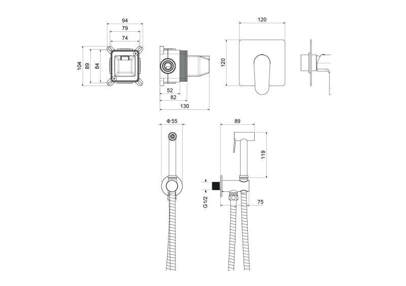 Гигиенический ручной душ Aquatek Оберон AQ1219MB черный