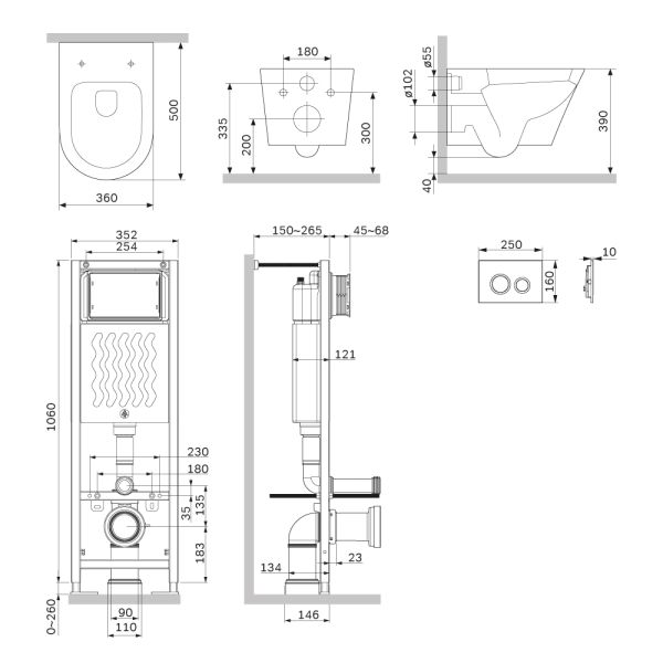 Максимально полный комплект поставки, включающий все необходимые крепления, патрубки, звукоизолирующую прокладку. Экономия пространства благодаря узкой раме – 352 мм шириной. Подходит даже для самых малогабаритных ванных комнат. Заливной клапан с низким уровнем шума - Класс II, согласно европейского стандарта EN 14124.