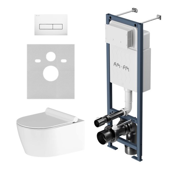 Инсталляция Am.Pm ErgoFit с подвесным унитазом без ободка с сиденьем микролифт и клавишей IS110301.DX77C1700
