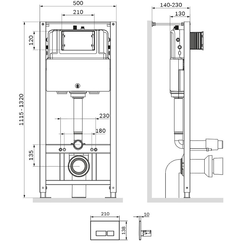 Инсталляция AM.PM Pro I012704.7051 для подвесного унитаза с клавишей смыва ХромВертикальные ребра жесткости в конструкции рамы – дополнительная опора в месте давления керамики на стену. Благодаря им инсталляция более универсальная и подходит для унитазов любых размеров, включая унитазы с небольшой контактной поверхностью. Нет необходимости докупать дополнительные аксессуары для монтажа таких унитазов. Благодаря цельному стальному профилю 40х40 мм толщиной 2 мм инсталляция выдерживает нагрузку до 400 кг. Цельный бесшовный бачок из полиэтилена с защитой от конденсации. Комфортное использование благодаря заливному клапану с низким уровнем шума - менее 20 Дб.