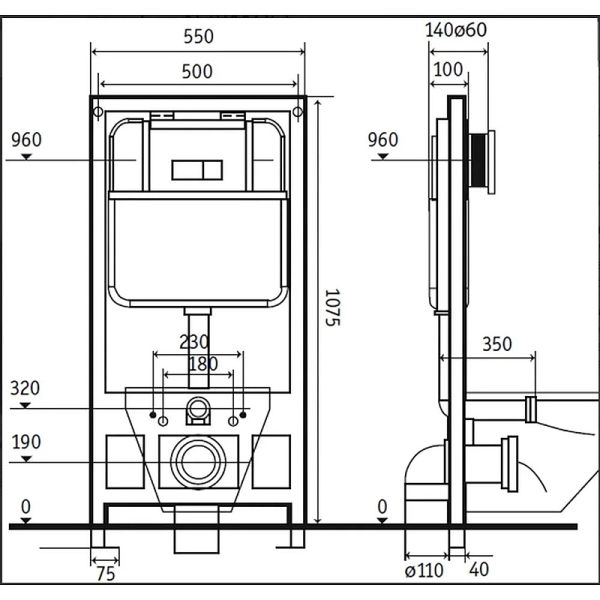 Размеры инсталляции (ШхВхГ): 550х1075х160 мм.