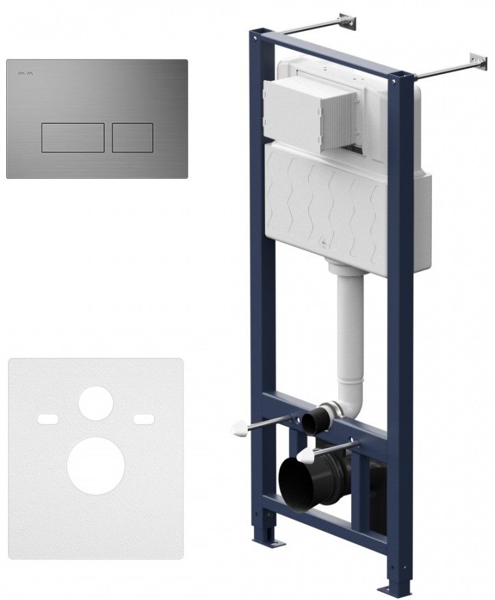 Вертикальные ребра жесткости в конструкции рамы – дополнительная опора в месте давления керамики на стену. Благодаря им инсталляция более универсальная и подходит для унитазов любых размеров, включая унитазы с небольшой контакной поверхностью. Нет необходимости докупать дополнительные аксессуары для монтажа таких унитазов
