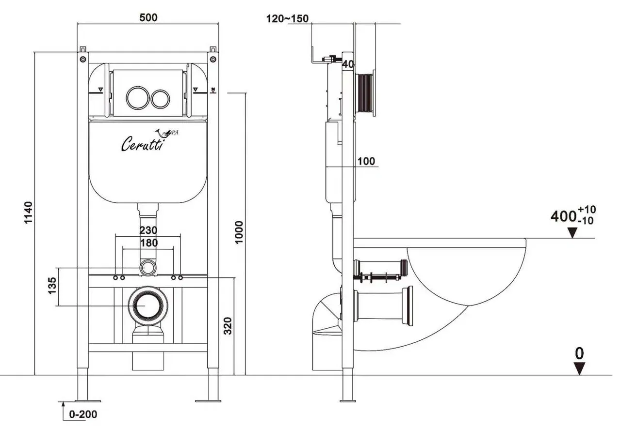 Инсталляция CR558 итальянского бренда Ceruttispa предназначена для крепления к капитальной стене и полу. (Инсталляция отгружается совместно с кодом 9910 - комплектом необходимых креплений и соединительных фитингов для подключения унитаза).