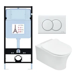 Инсталляция Jacob Delafon E21731RU-00, с безободковым унитазом Aleo, сиденье с микролифтом, клавиша белая глянцевая