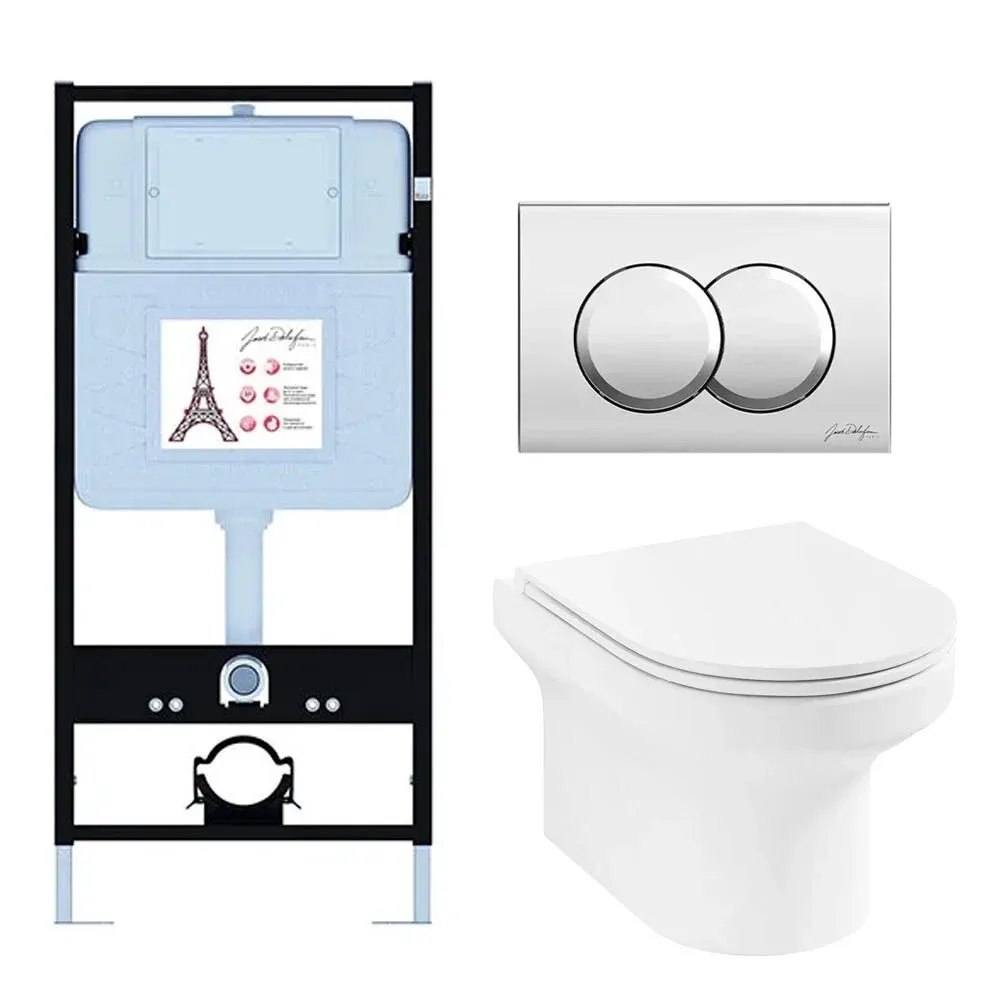 Инсталляция Jacob Delafon E21743RU-CP, с безободковым унитазом Elite, сиденье с микролифтом, клавиша хром