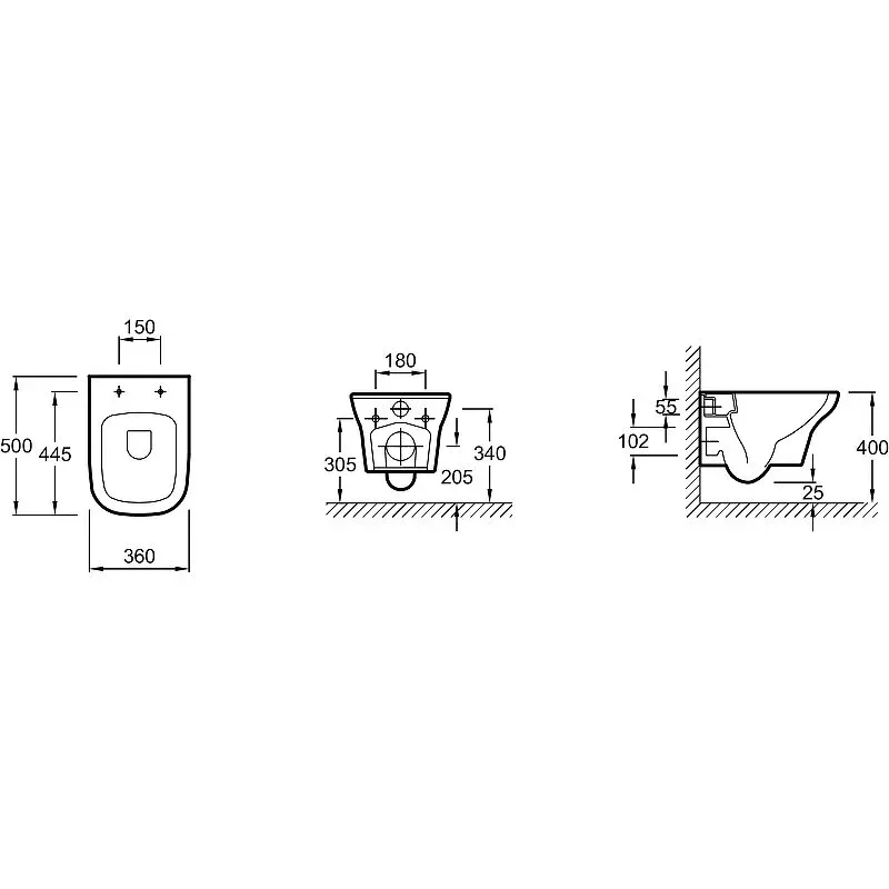 • Монтаж: подвесной, вплотную к стене.