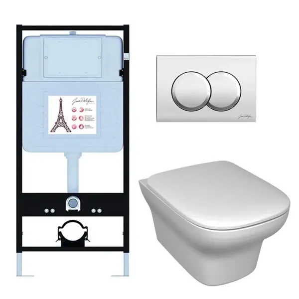 Инсталляция Jacob Delafon E21747RU-CP с безободковым унитазом Vox сиденье с микролифтом клавиша смыва хром купить