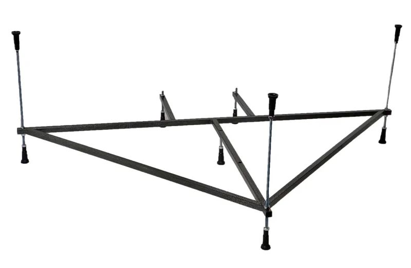 Усиленный цельносварной стальной каркас для ванны изготовлен из квадратного металлического профиля 2х2 см и окрашен темно-бронзовой молотковой краской. Каркас имеет 8 ножек и 4 опоры в борт ванны снизу. Предназначен для использования во влажных помещениях.