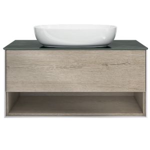 Kerama Marazzi Тумба PLAZA Modern PLB.M.100.1\OAK.O, подвесная 100 см,1 выдвижной ящик и открытая полка, цв.дуб Орегон