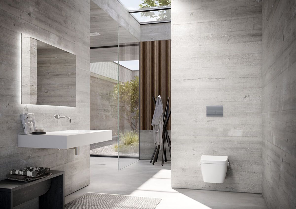 уровне стены вместе с монтажной рамкой унитаза для монтажа на уровне