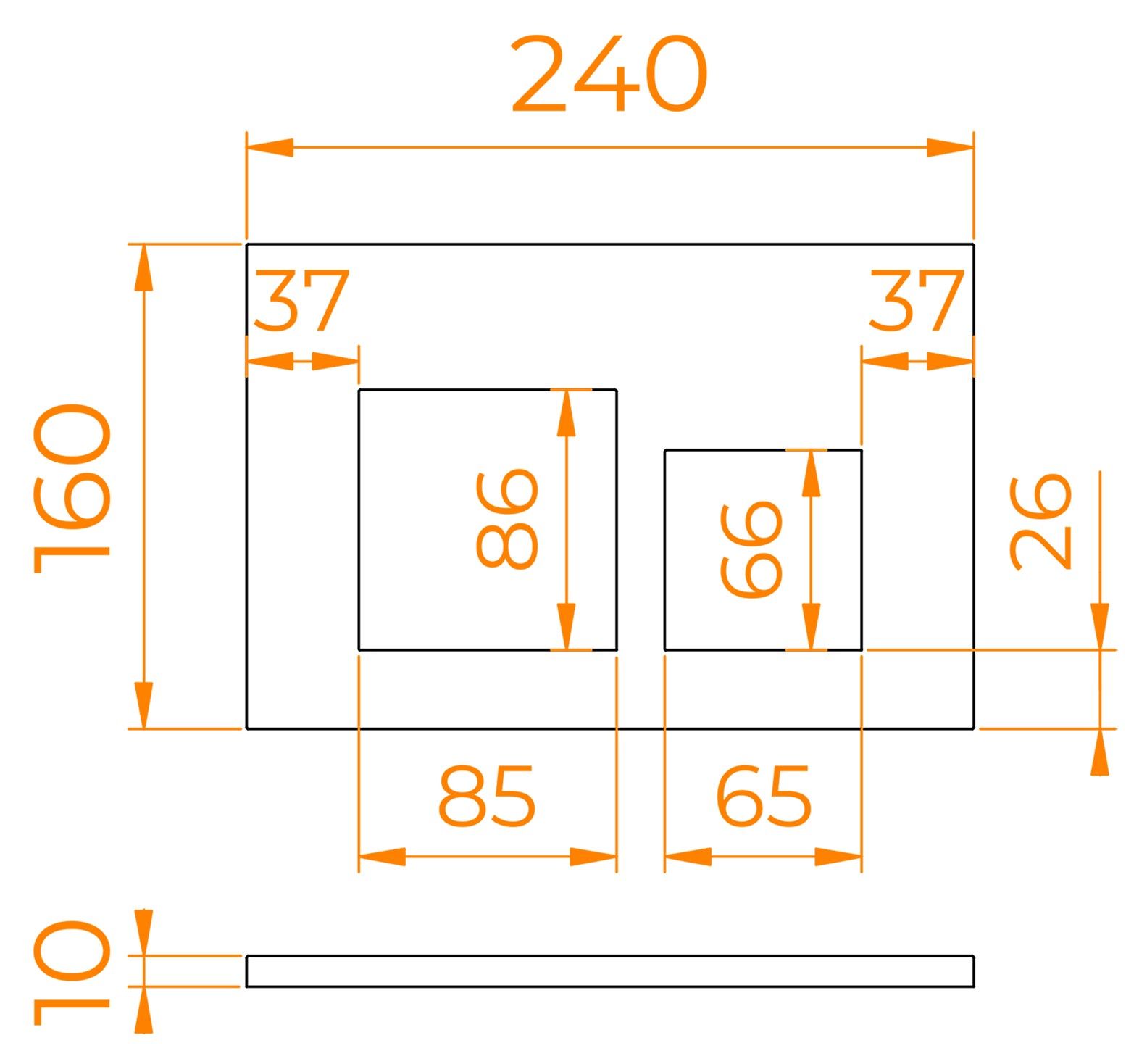 Размеры (ШхВхГ): 240х160х10 мм.