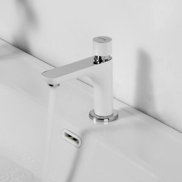 Смеситель для умывальника Gappo G5148 — нажимной кран на одну воду для порционной подачи воды. Задержка включения на 9.5-12.5 секунд позволяет существенно экономить ресурс. Благодаря стильному дизайнерскому решению модель идеально впишется в современный интерьер. Цвет - хром / белый.