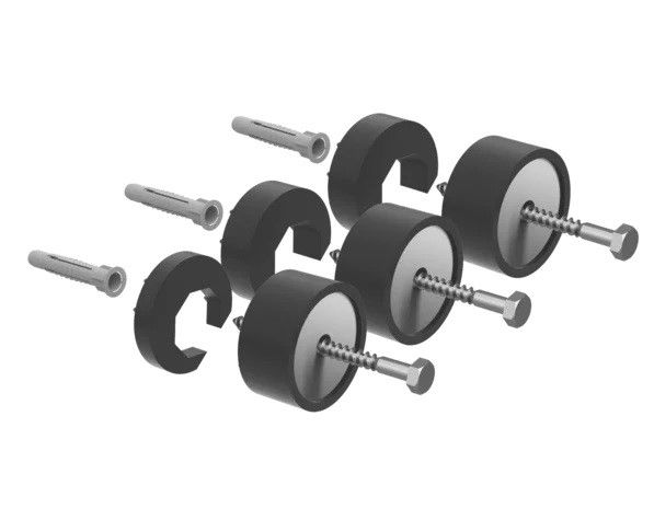 С помощью анкеров, оснащенных встроенной звукоизоляцией, ванны и душевые поддоны надежно фиксируются у стены. В соответствии с рекомендованным количеством для монтажа комплект содержит три анкера.