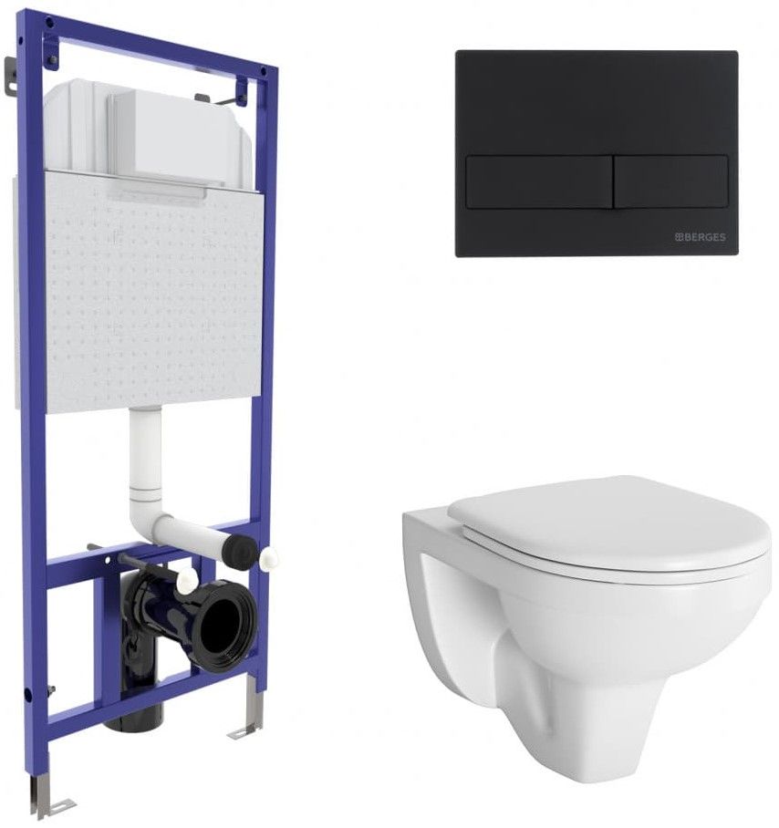 Комплект Berges 4в1 042426: инсталляция NOVUM525 кнопка L5 SoftTouch чёрная унитаз Gamma сиденье микролифт купить
