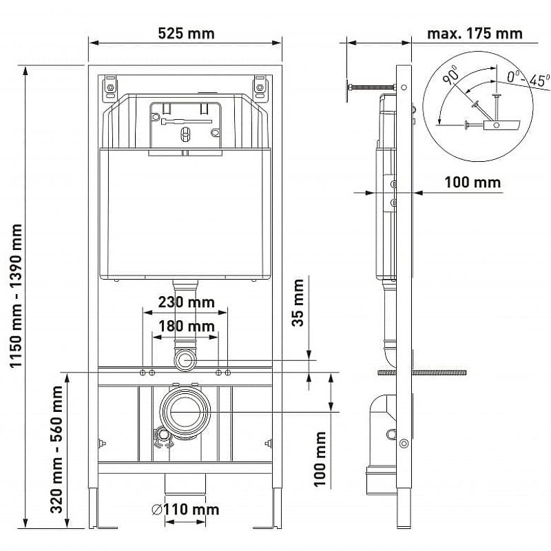 Инсталляция:Монтажная рама:Материал: сталь.
