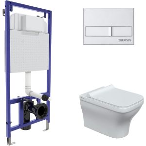 Комплект унитаза с инсталляцией Berges Wasserhaus Novum 042453 с сиденьем микролифт и клавишей смыва хром матовый.Характеристики:Унитаз Strati Rimless:Цвет: белый.