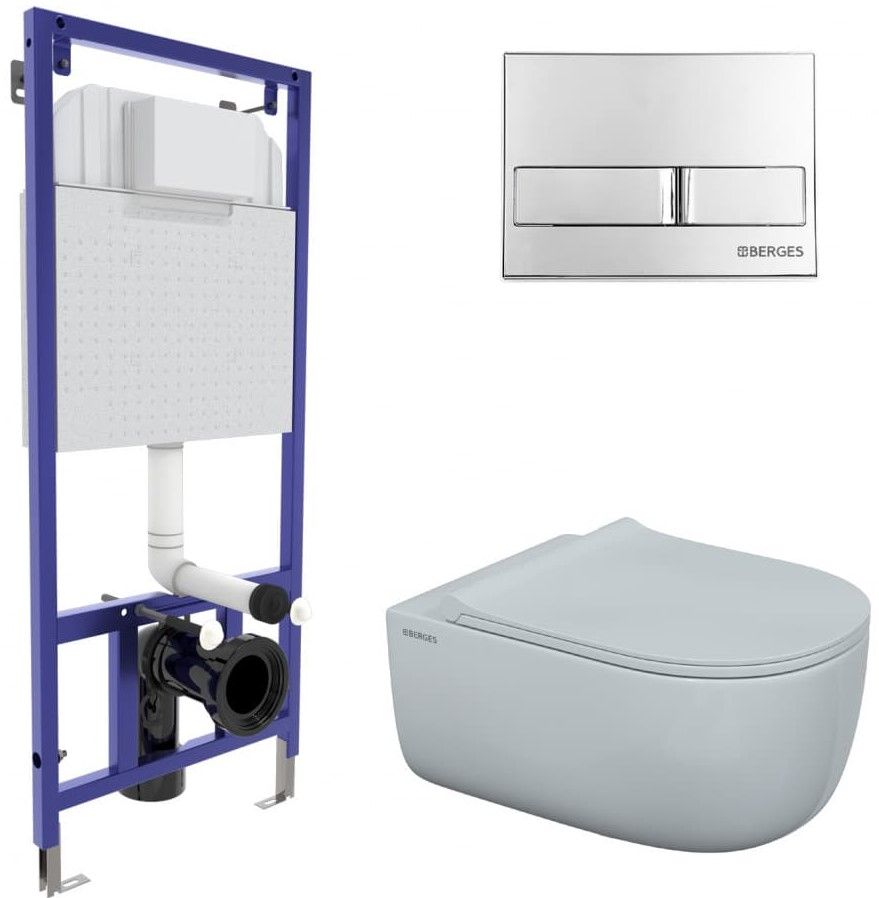 Комплект Berges 4в1 043203: инсталляция NOVUM525 кнопка L3 хром глянец унитаз EGO XL Rimless сиденье Toma Slim SO купить
