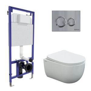 Полный комплект BERGES для монтажа подвесного унитаза. 1. Инсталляция NOVUM525Толщина бачка 80 мм.Межосевое расстояние под крепежные шпильки унитаза 18 и 23 см.Резервуар воды объемом 10 литров с тепло-шумоизоляцией.Уровень шума при давлении 3 бар не превышает 13 дБ.Подвод воды сверху (G1/2 наружная).Объем смыва 3/6 литра с возможностью регулировки. Металлический каркас, окрашенный антикоррозийной эмалью, расчетная нагрузка до 400 кг.Ножки регулировки высоты из оцинкованной стали. Возможность установки в угол. 2. кнопка О3 хром глянецABS-пластик 3. унитаз , VENTAS Rimlessбезободковая система смыва, антибактериальное покрытиеэкономия воды, скрытый крепеж 4. сиденье дюропласт Ventas Slim SOмикролифт, быстросъем Все крепежи для установки в комплекте
