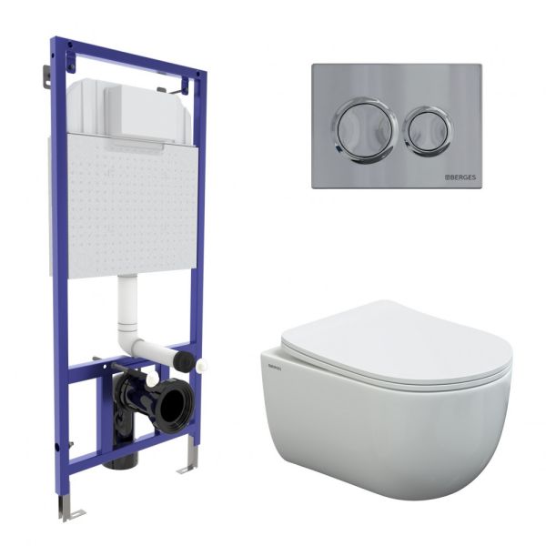 Комплект Berges 4в1 043241: инсталляция NOVUM 525 кнопка О3 хром глянец унитаз VENTAS Rimless сидение дюропласт Ventas Slim SO