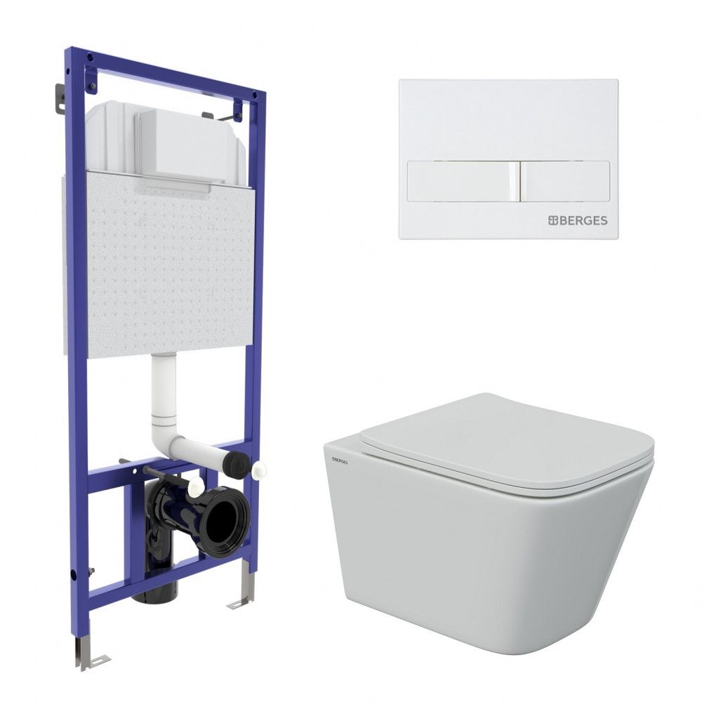 Комплект Berges 4в1 043244: инсталляция NOVUM 525 кнопка L1 белая унитаз FLOE S Rimless сидение дюропласт Floe S Slim SO